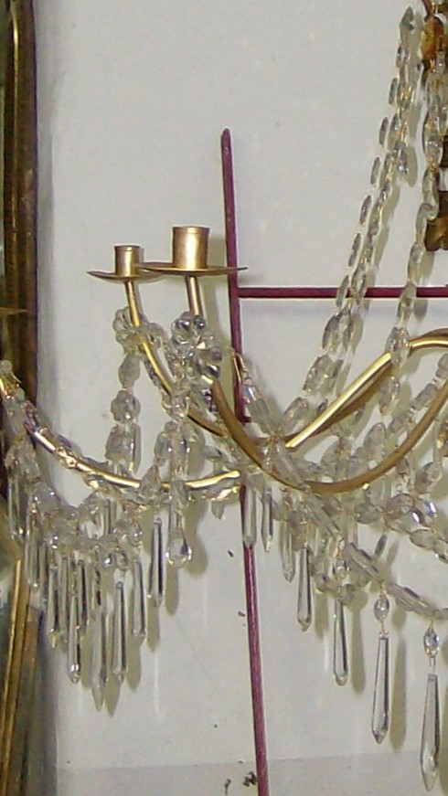Grazie alla pulizia delle gocce di cristallo, ad una nuova ammagliatura con filo di ottone e al restauro del montante in legno possiamo riportarli a brillare.